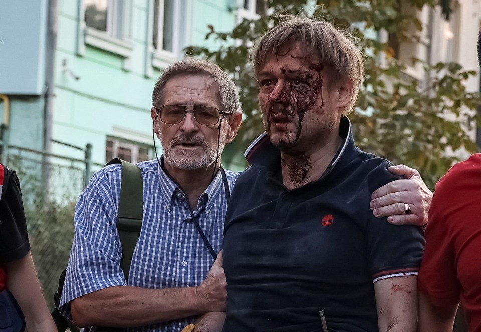 ReutersHeartbreaking pictures show a dazed and bloodied Yaroslav being held up by medics as he followed his daughter’s body on a stretcher[/caption]