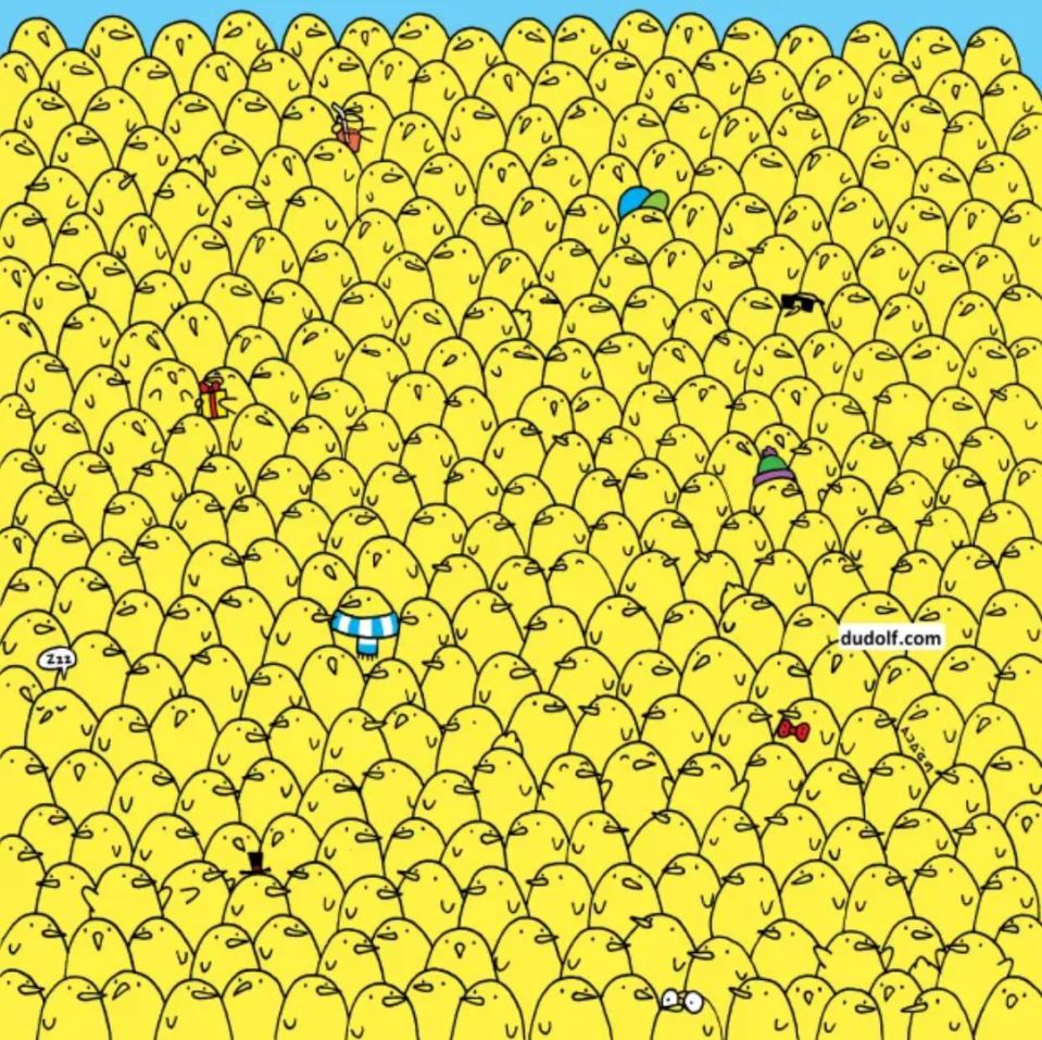 There are rows and rows of birds all squashed together, and only those with eagle-eyes will be able to find the lemons.