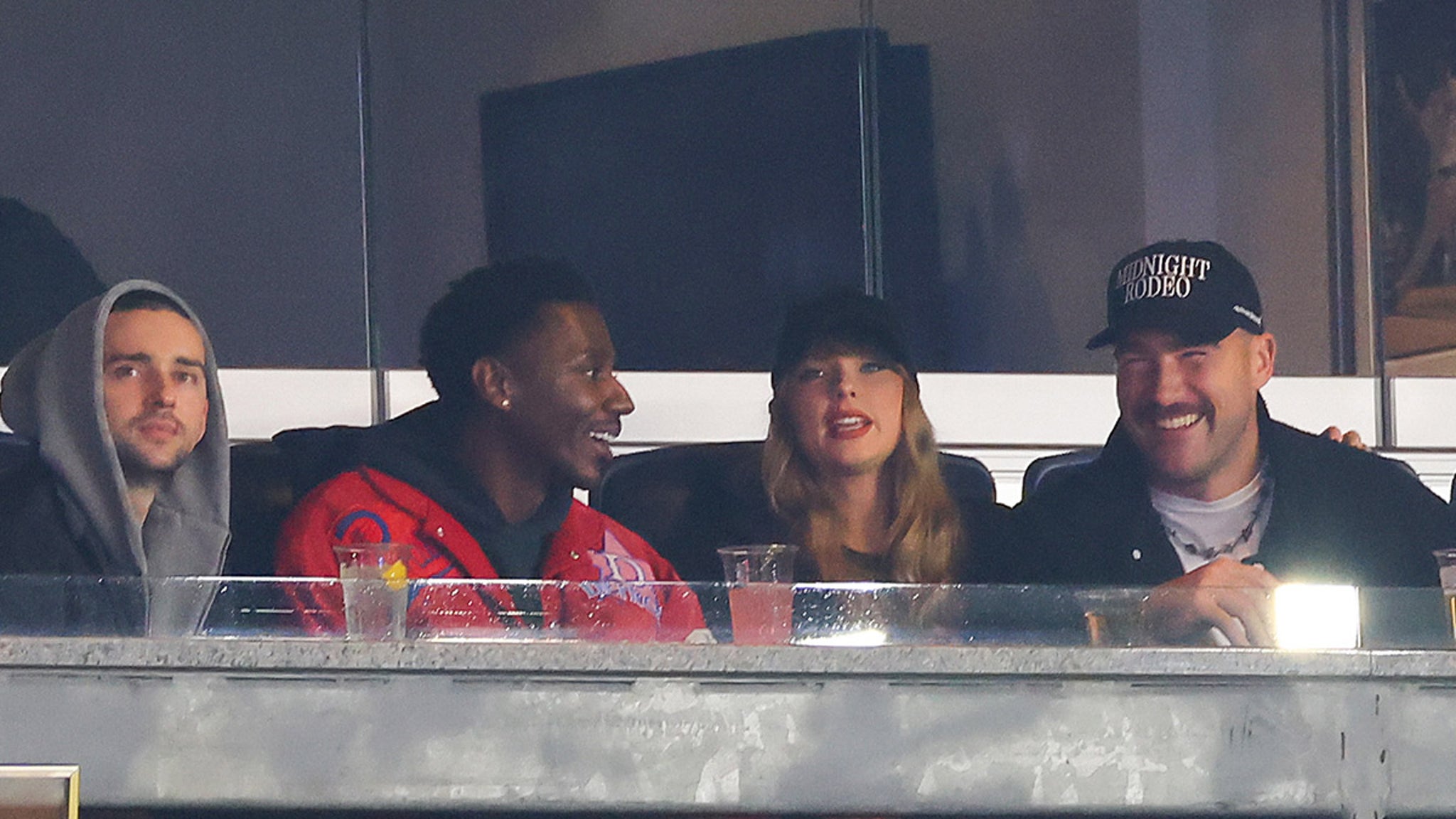 Taylor and Travis look like they’ve got a couple buddies with them in the suite … and everyone is happy and smiling … with some cold beverages on the counter.