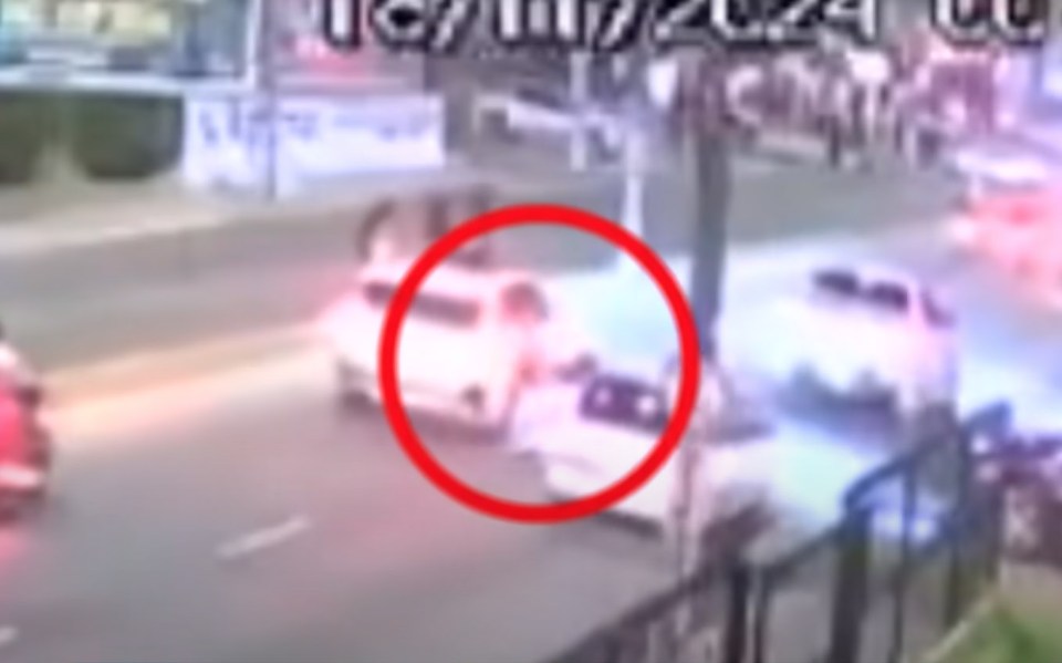 The influencer can be seen crashing down onto the busy road as the clip stops.