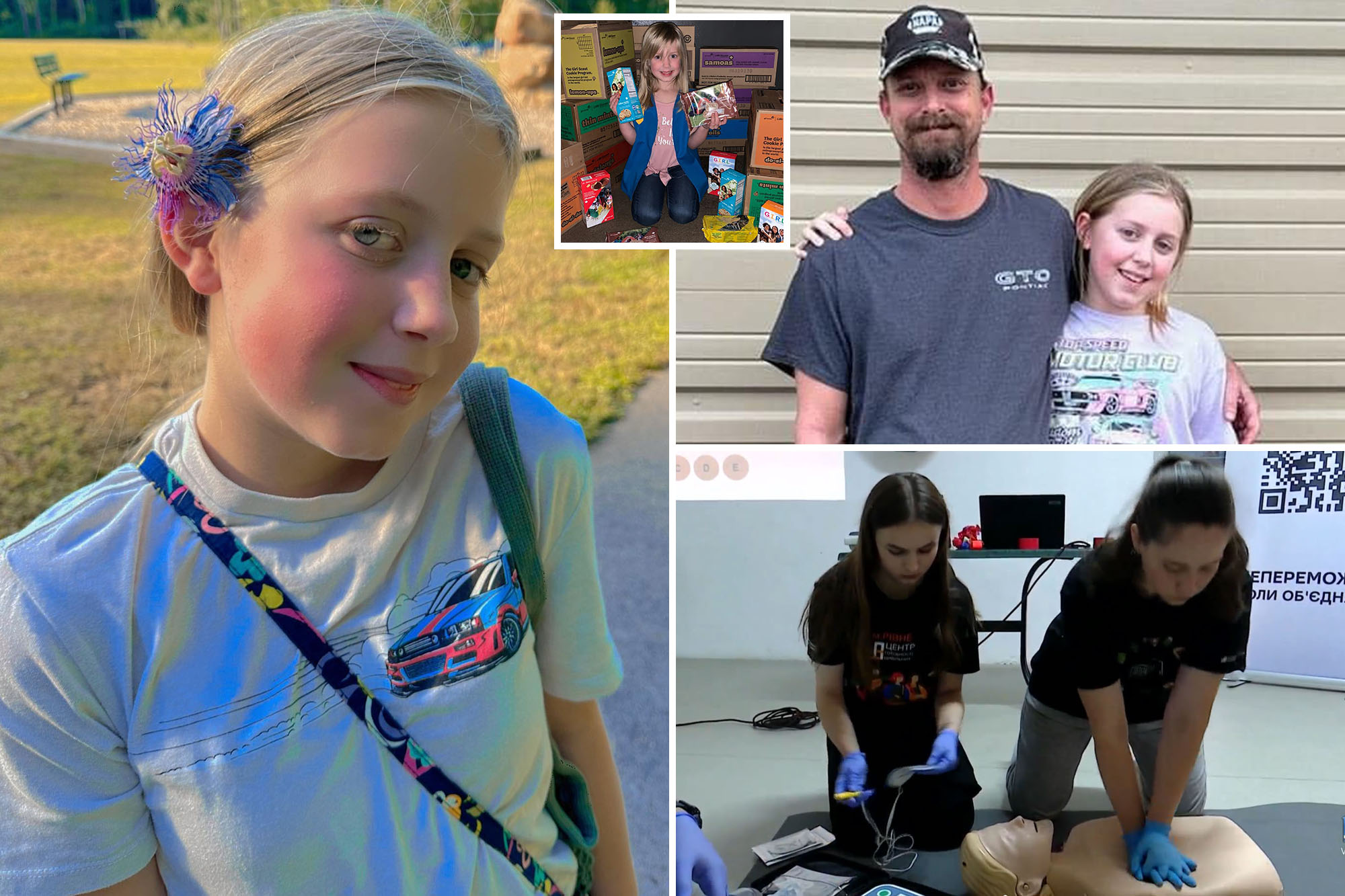 Vada Carawan, 11, sprung into action after seeing dad Clint Carawan having a heart attack on the floor of their home in Virginia just 11 days after she first practiced CPR on a dummy during a Girl Scout training session, WAVY reported.