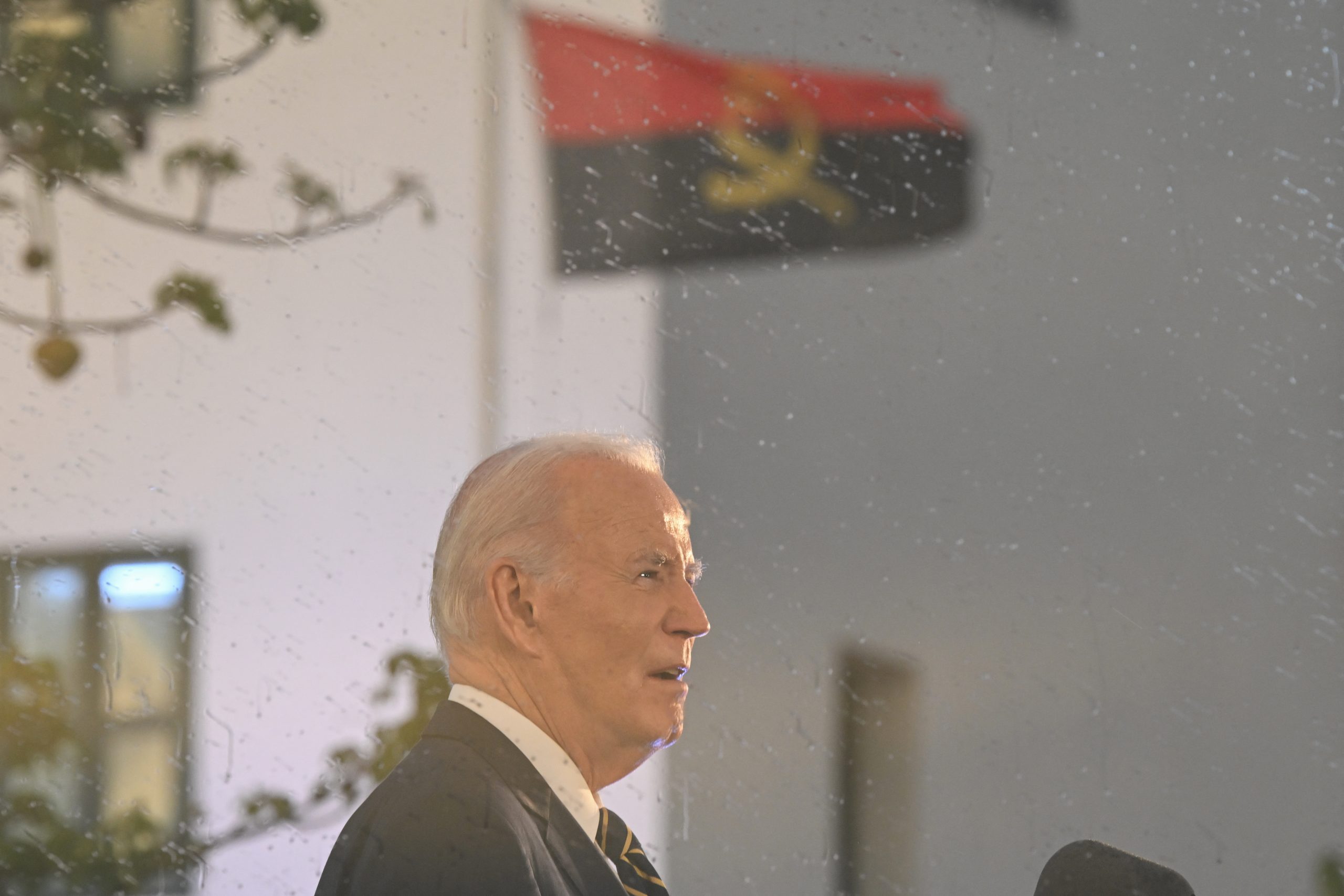 Biden appeared earlier for a photo op with Angolan President João Lourenço, who gently guided him down the red carpet with a hand on his back before pointing the correct way to walk. AP
