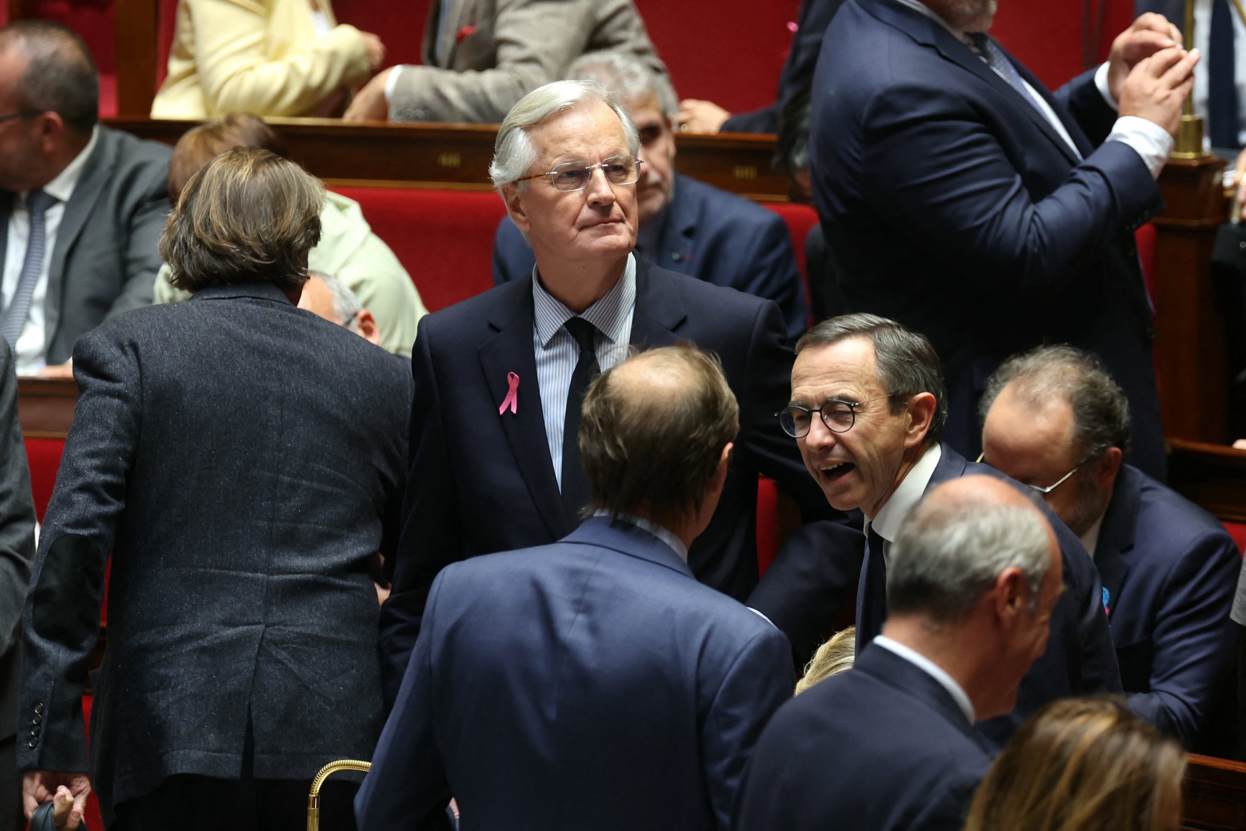 French Prime Minister Michel Barnier (C) ahead of his general policy statement to the French National Assembly in Paris on October 1, 2024. Barnier, a right-wing former EU Brexit negotiator, was appointed three weeks ago by French President to bring some stability after the political chaos created by a hung parliament that resulted from snap elections this summer.