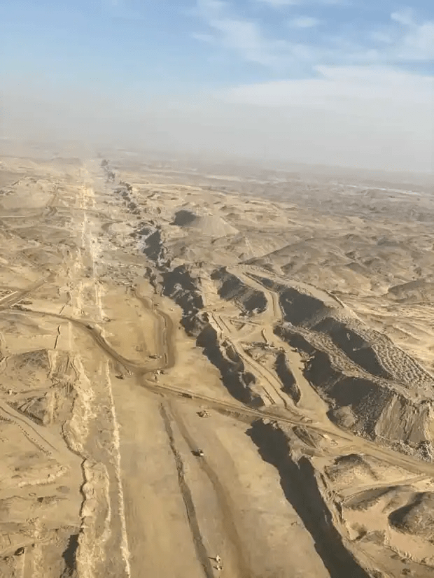 Aerial images released earlier this year showed a chasm for the futuristic city had been carved out of mountains and desert as excavation works continued along the country’s northwestern coast.