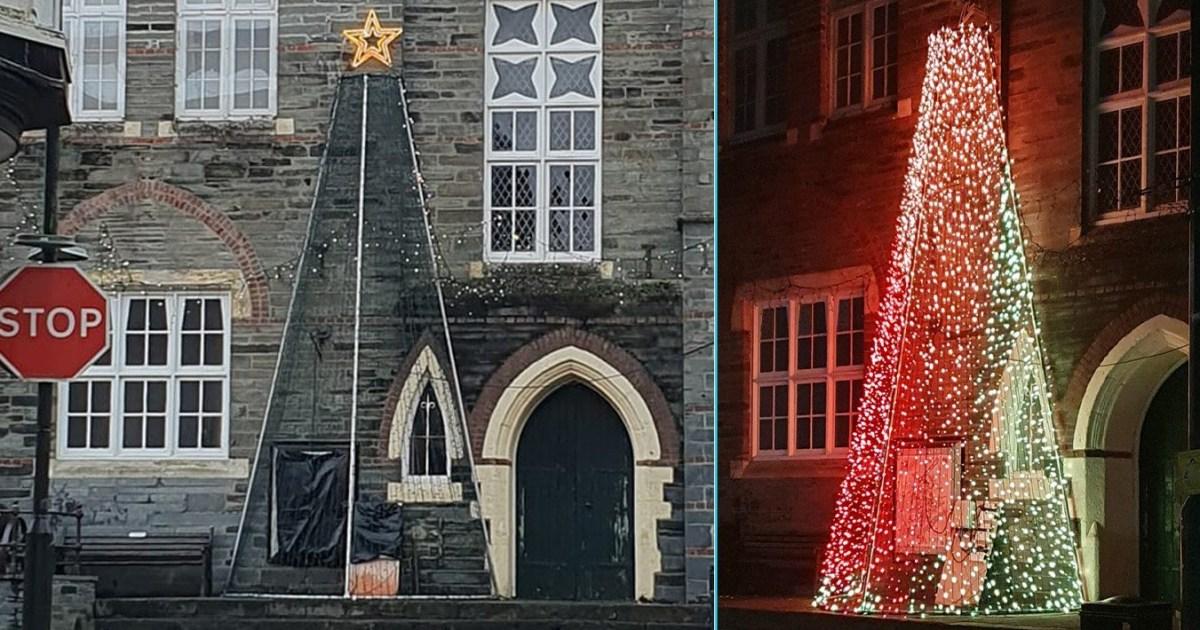 The tree lights up at dusk but not everyone is a fan (Picture: Wales News)
