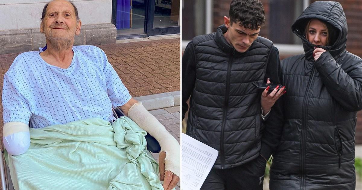 Vic Franklin, 78, (left) had to have part of an arm and a leg amputated after being savaged by the animals, named Ziggy and Daisy, owned by Matthew Roberts and Chloe Taylor (right) (Picture: Solent)