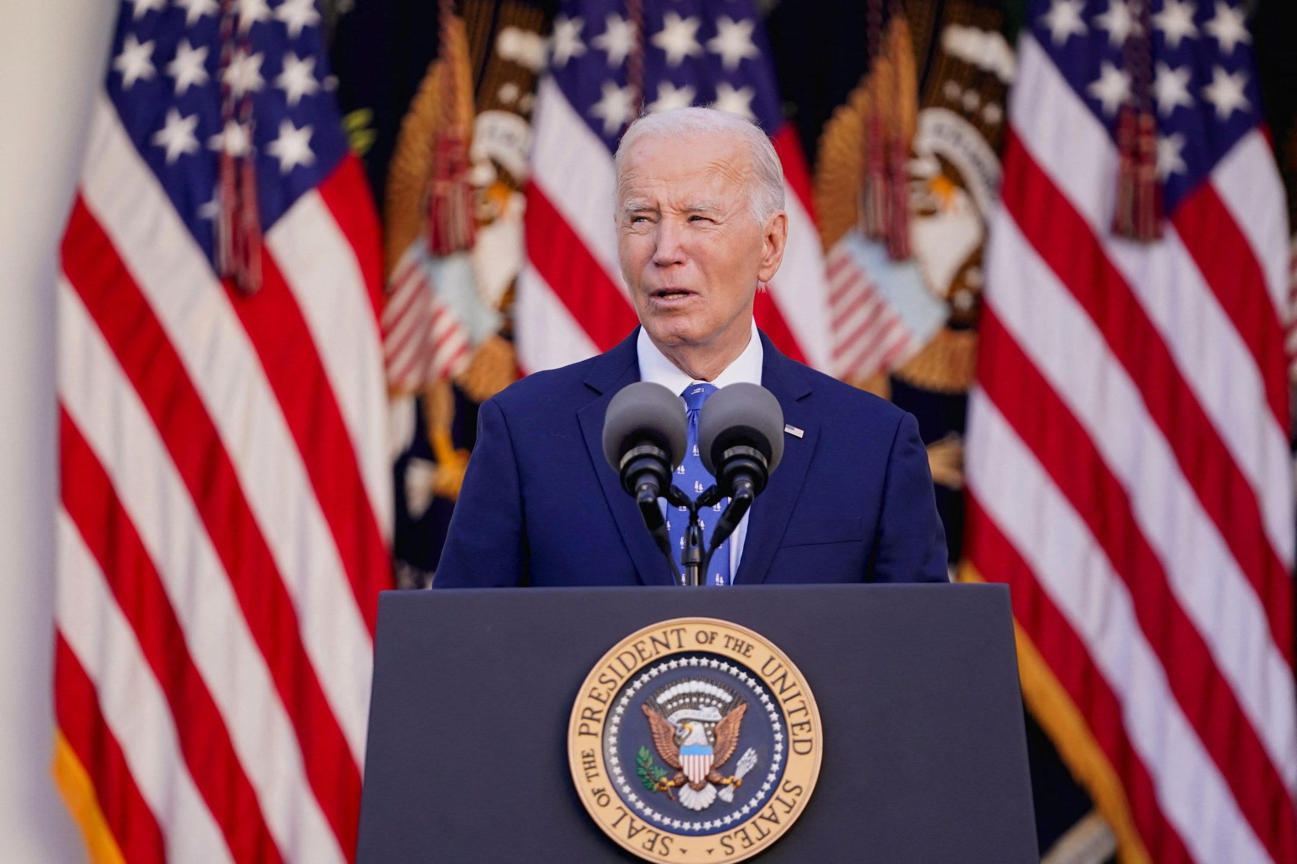 U.S. President Joe Biden delivers remarks from the Rose Garden of the White House in Washington, U.S., November 26, 2024.