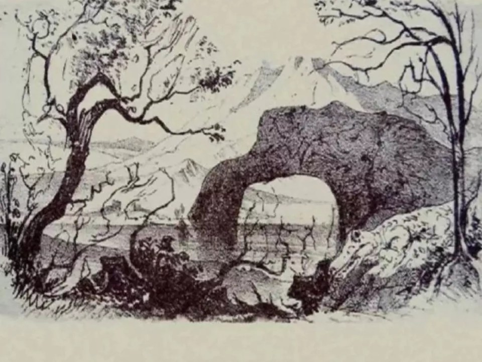 This black-and-white sketch looks at first like a detailed drawing of a mountainous landscape.