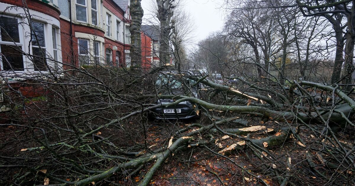Earlier in the day, a man died after a tree fell onto his van in Lancashire.
