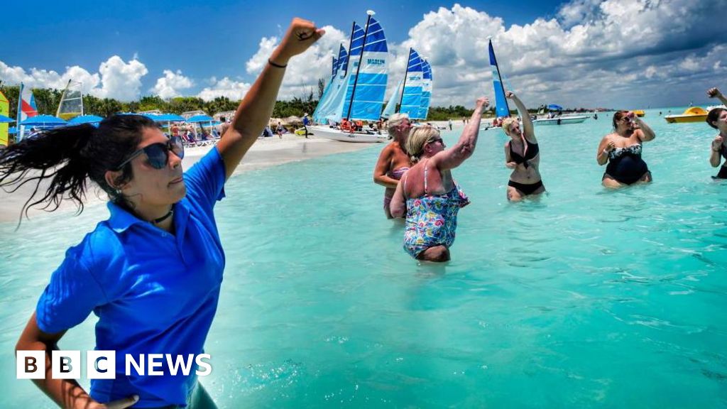 Canadian tourists, such as these taking part in an exercise class, are vital to the Cuban tourism sector