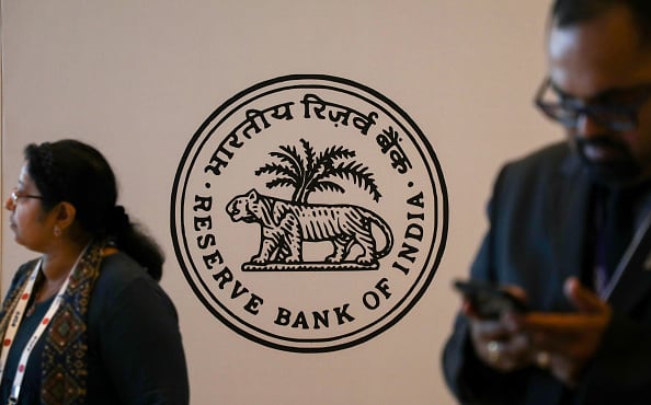 People stand in front of a Reserve Bank of India logo at the Global Fintech Fest in Mumbai, India, 5 September, 2023.