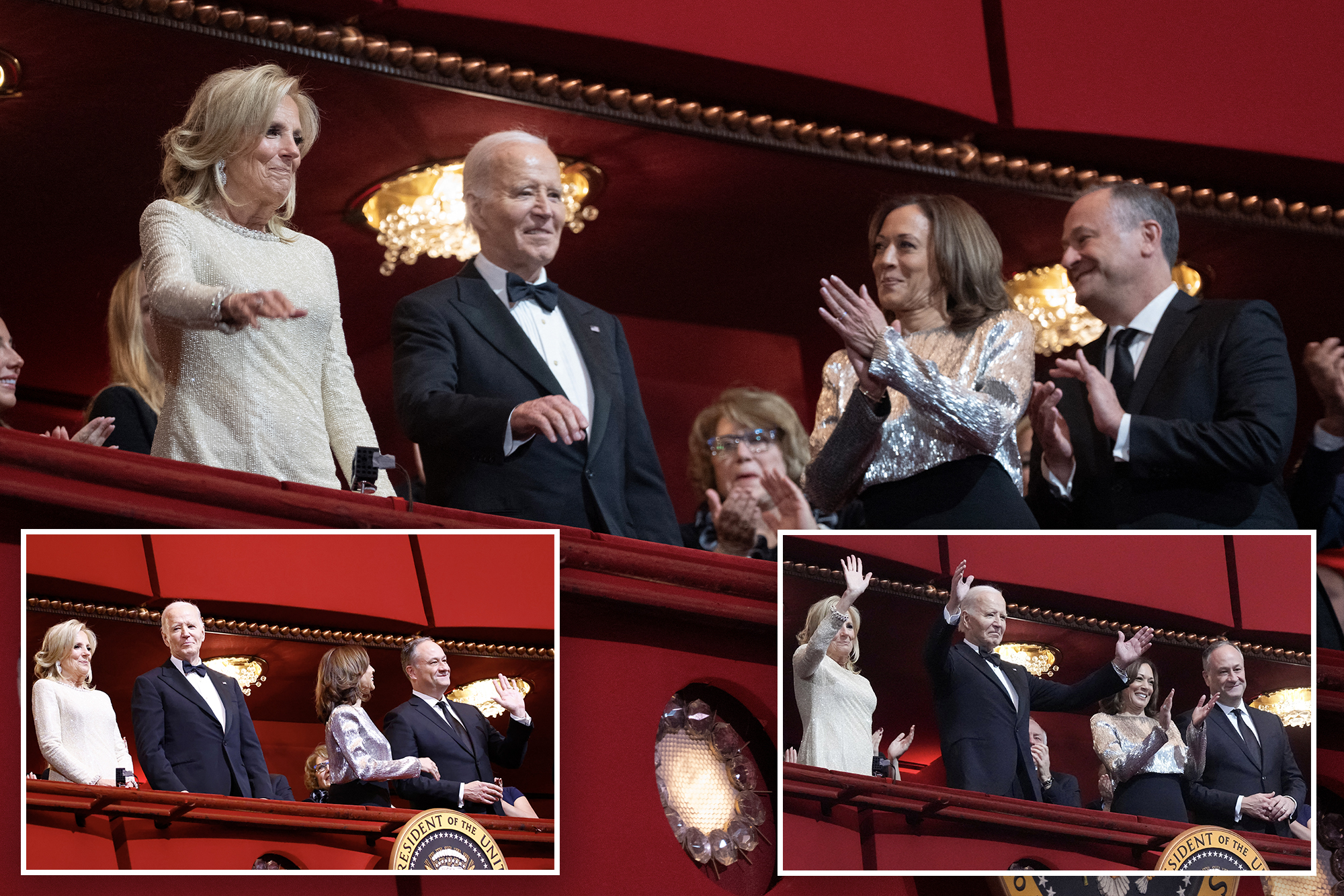 Lame duck President Biden and First Lady Jill Biden ignored a beaming Vice President Kamala Harris — who was applauding enthusiastically for the couple — as they entered the Kennedy Center Honors to a standing ovation, awkward video shows.