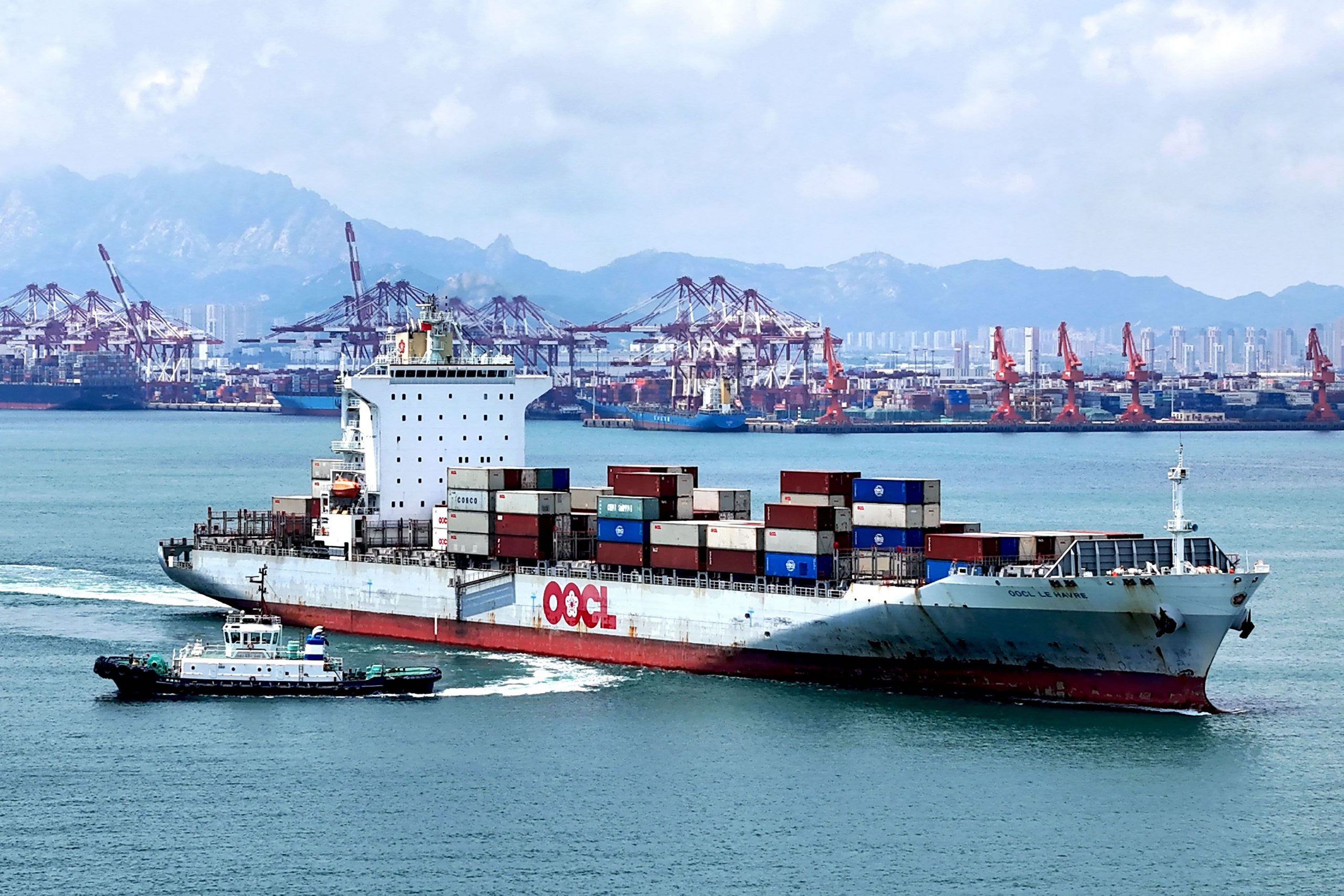 A foreign trade container ship is leaving the dock at Qingdao Port in Qingdao, China, on June 7, 2024.