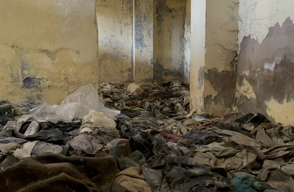 Haunting images show massive piles of clothes and shoes hidden away in a secret compartment of the notorious Sednaya prison.
