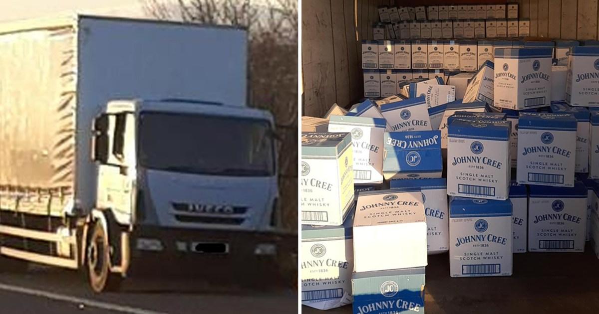 Police officers on drink driving patrol got more than they bargained for after pulling over a ‘suspicious’ lorry – £70,000 of whisky stashed in the back.