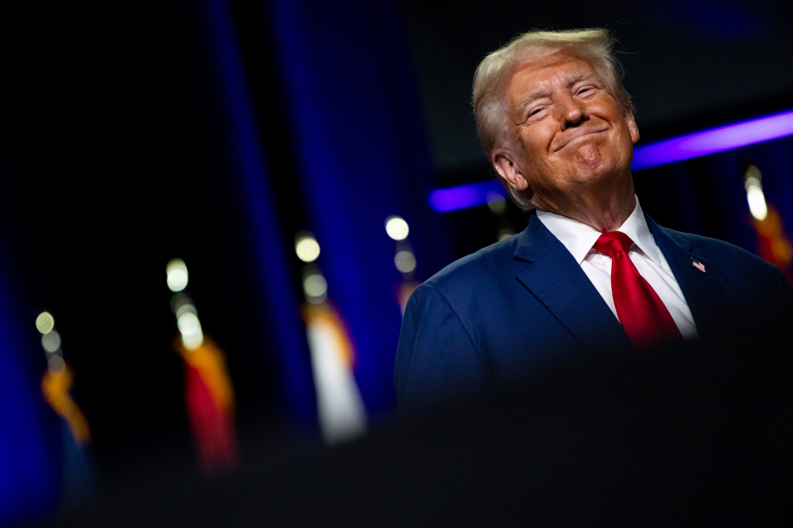 U.S. President-elect Donald Trump smiles at the crowd during the National Guard Association of the United States’ 146th General Conference & Exhibition at Huntington Place Convention Center on Aug. 26, 2024 in Detroit, Michigan.