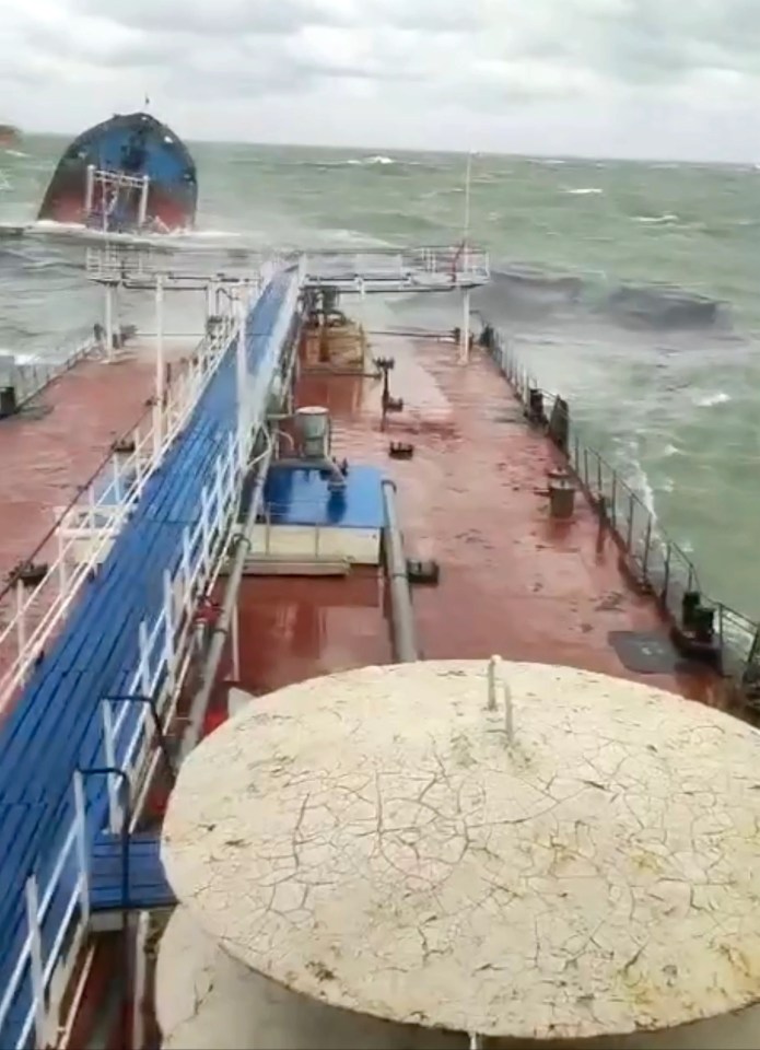 The two Russian tankers in the Black Sea have been badly damaged due to stormy weather