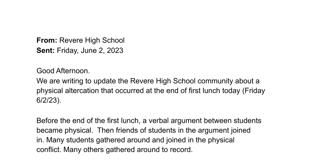 The post Read the email from Revere’s principal appeared first on WorldNewsEra.