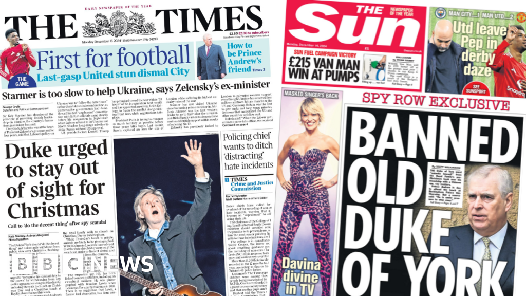 The Duke of York has been urged to “do the decent thing” and withdraw from public view over Christmas, Buckingham Palace sources have told The Times. It comes as controversy continues over the duke’s links to a Chinese “spy”, who has now been expelled from the UK but remains anonymous. Separately, Ukraine’s former foreign minister Dmytro Kuleba says Sir Keir Starmer is not providing leadership and had adopted a policy of “following the Americans” with regards to the war in Ukraine.