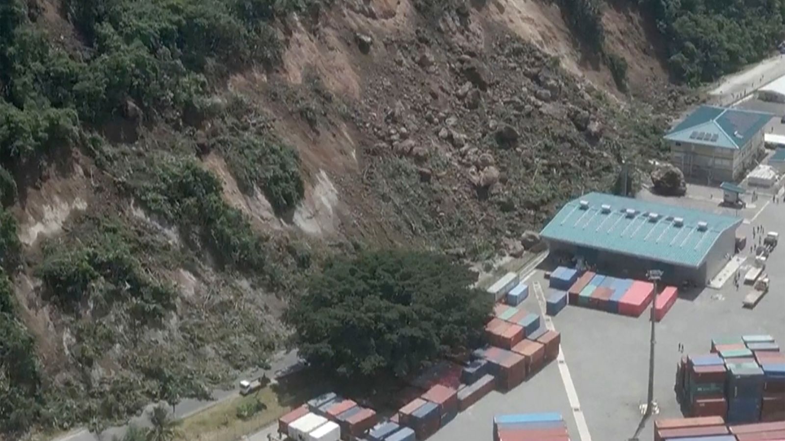 Another video, posted by Dan McGarry, showed aerial pictures of a “massive” landslide at the international shipping terminal.
