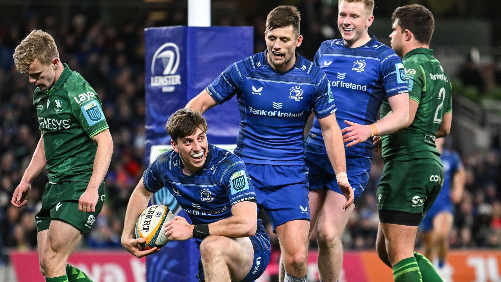 Jamie Osborne and Charlie Tector cross for first-half tries as Leinster beat Connacht 20-12 at Aviva Stadium; Oisin Dowling and Shane Jenning cross in second half to set up big finish but Leinster hold on to make it 10 wins from 10 in all competitions this season