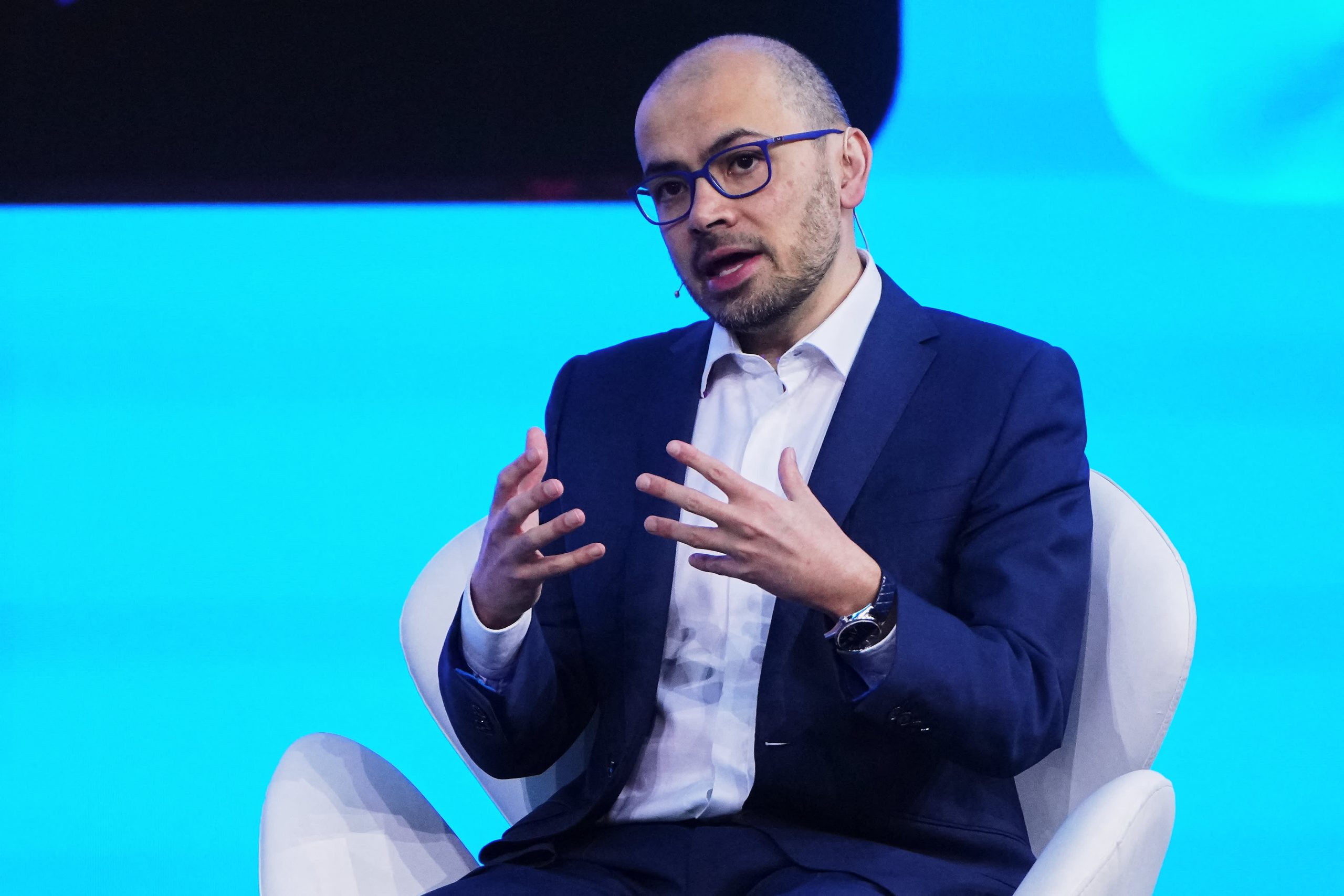 Google DeepMind co-founder and Chief Executive Officer Demis Hassabis gives a conference during the Mobile World Congress (MWC), the telecom industry’s biggest annual gathering, in Barcelona on February 26, 2024.