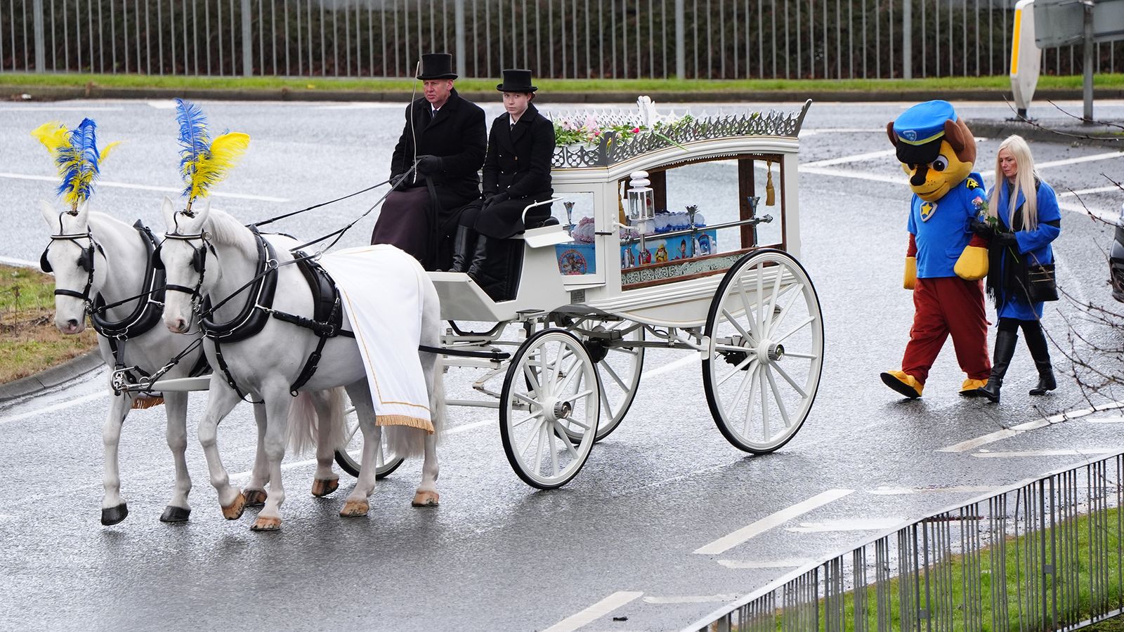 Hope’s coffin was decorated with characters from Paw Patrol, her favourite cartoon, and the hearse followed a car carrying a Paw Patrol floral tribute provided by Toronto Primary School, where she had been a pupil.