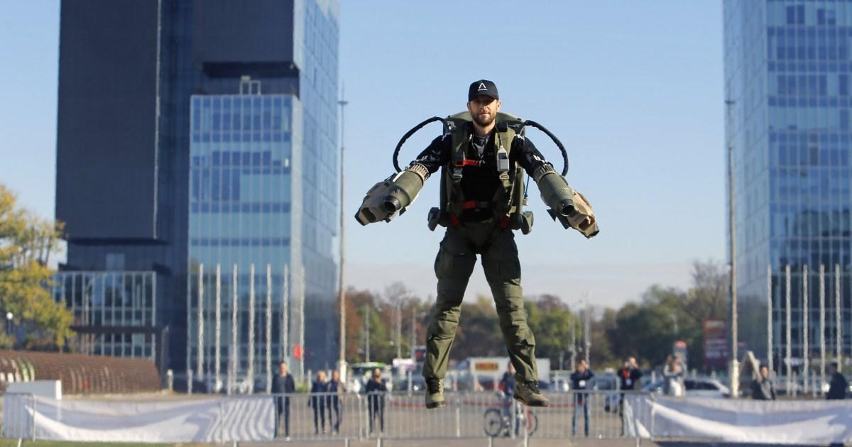 It holds the current world speed record for flight packs and improves on previous technology with six micro gas turbines attached the arm allowing for greater movement control.