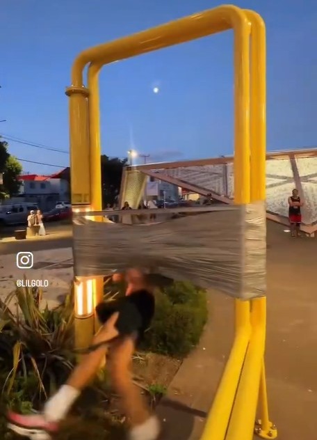 Lil Golo said: “Let’s see how much duct tape it takes to stop me,” as he began filming the stunt.