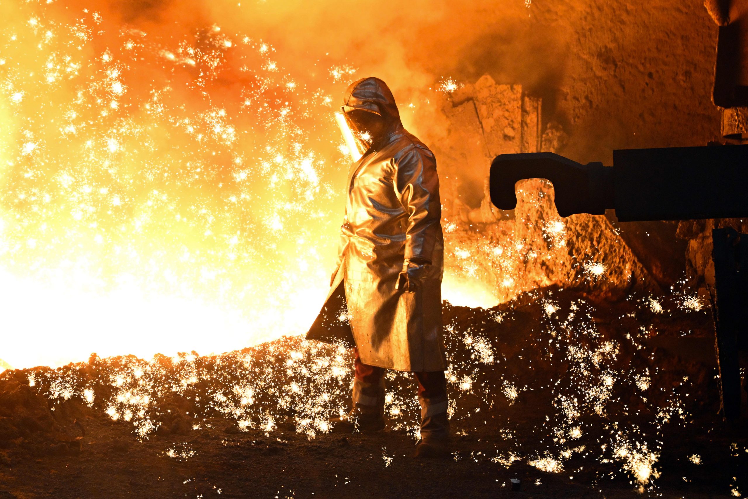 An employee stands at a blast furnace. In November, Thyssenkrupp Steel announced that the number of jobs in the steel sector would be reduced by 11,000 to 16,000 within six years.