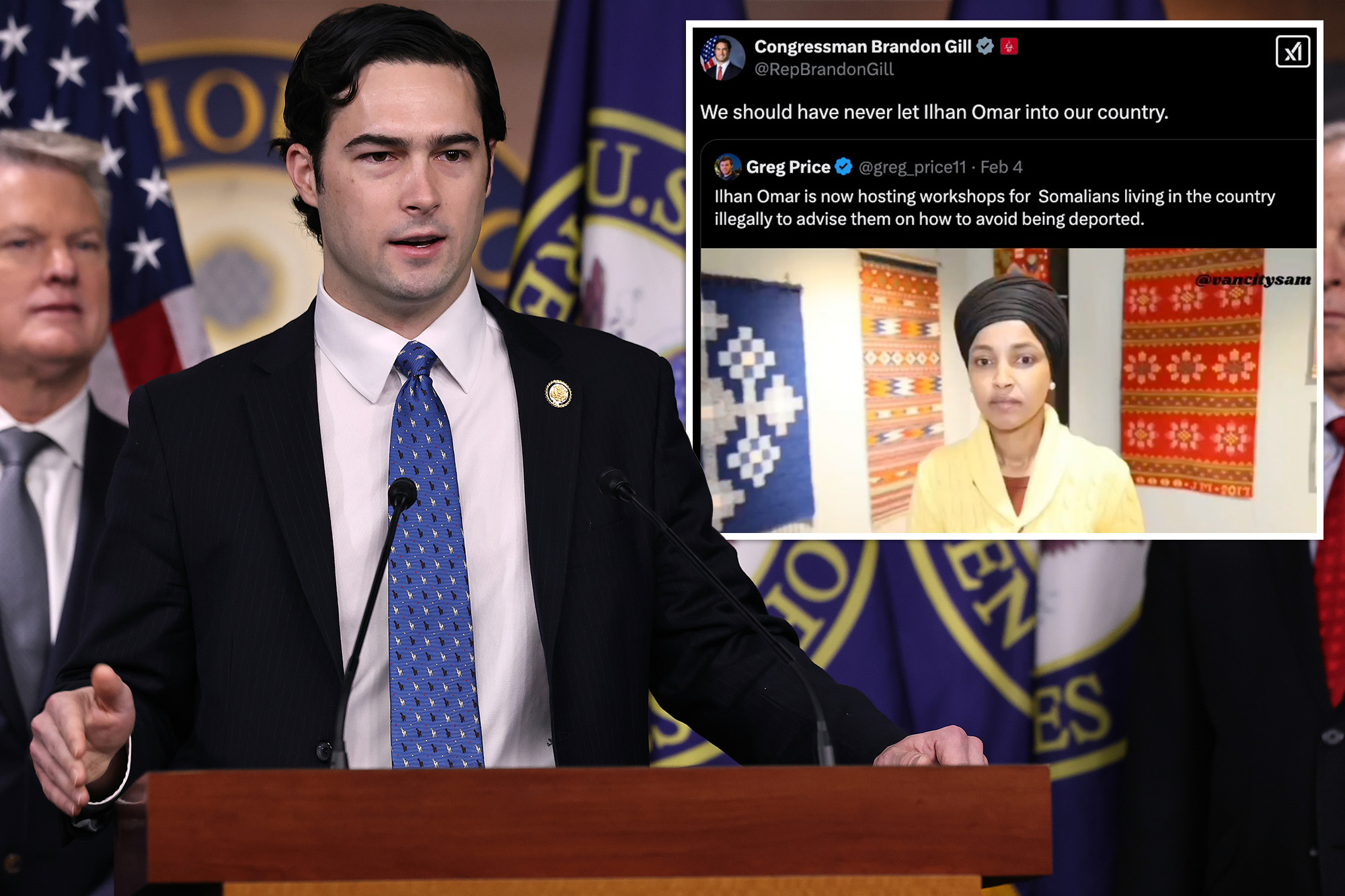 He took aim at Omar, who is a US citizen, after footage emerged last week of her advising Somali-born constituents on what to do if they’re questioned by ICE officials. X / @RepBrandonGill