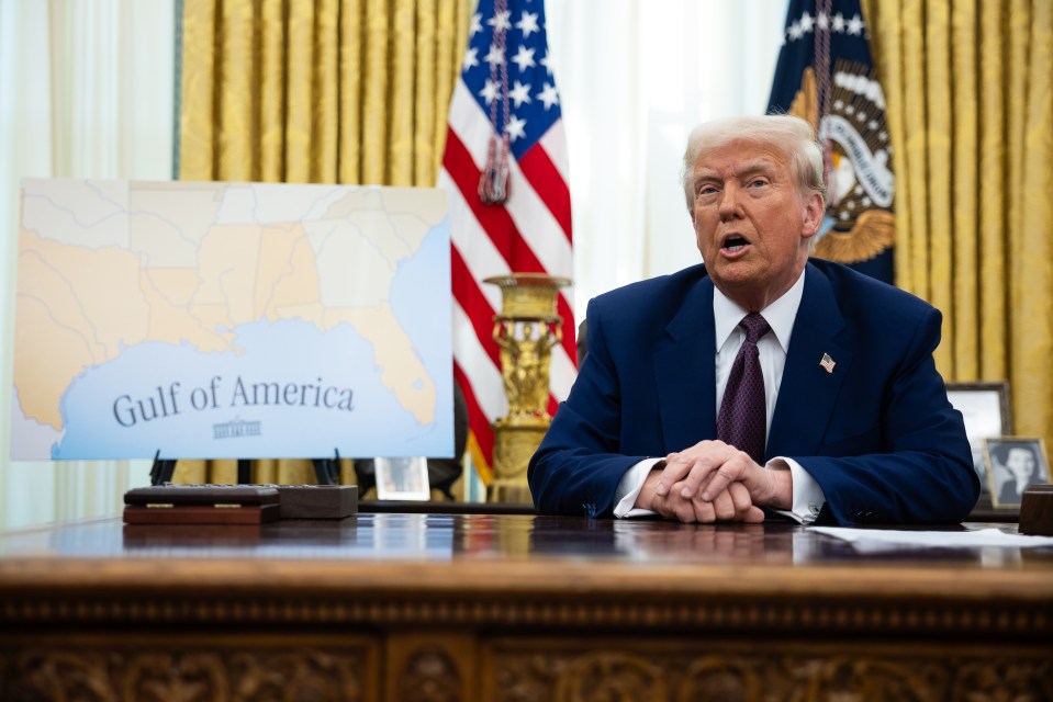 EPADonald Trump spoke with reporters as he signed executive orders in the Oval Office[/caption]