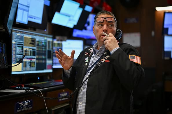 Traders work on the floor of the New York Stock Exchange (NYSE) at the opening bell in New York City on February 12, 2025.