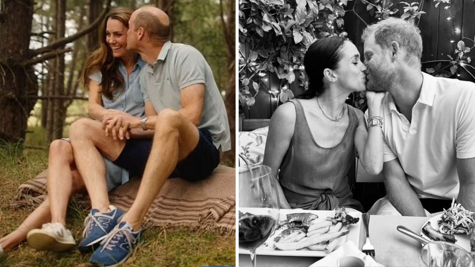 The Prince and Princess of Wales and the Duke and Duchess of Sussex have marked Valentine’s Day by sharing romantic pictures.