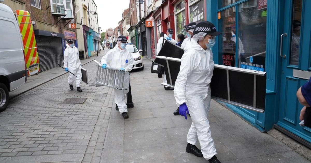 Police forensic investigators enter a disused building in County Durham after a skeleton of a baby was found beneath floorboards by contractors working on a property renovation (Picture: PA Wire)