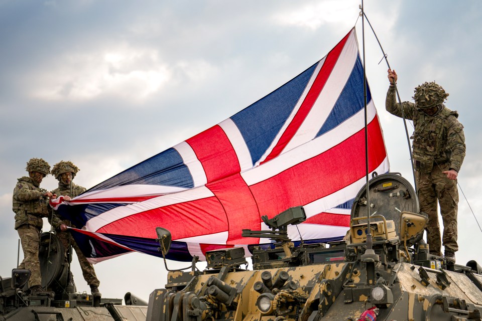 APBritish troops unfurl the Union Jack flag before the start of the Steadfast Dart 2025 exercise[/caption]