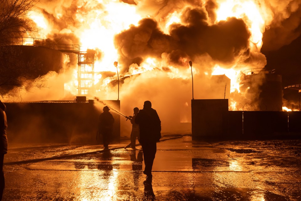 GettyFirefighters try to extinguish after Russian drone attack in Kharkiv[/caption]
