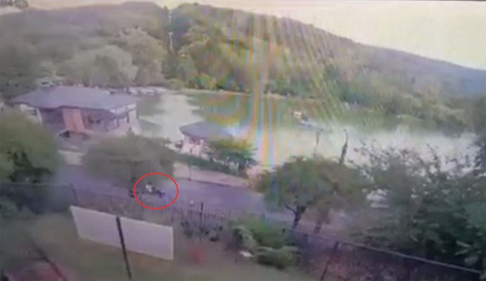 THIS is the horrifying moment a chairlift collapses at a Russian resort with four passenger sent plunging into a lake below.