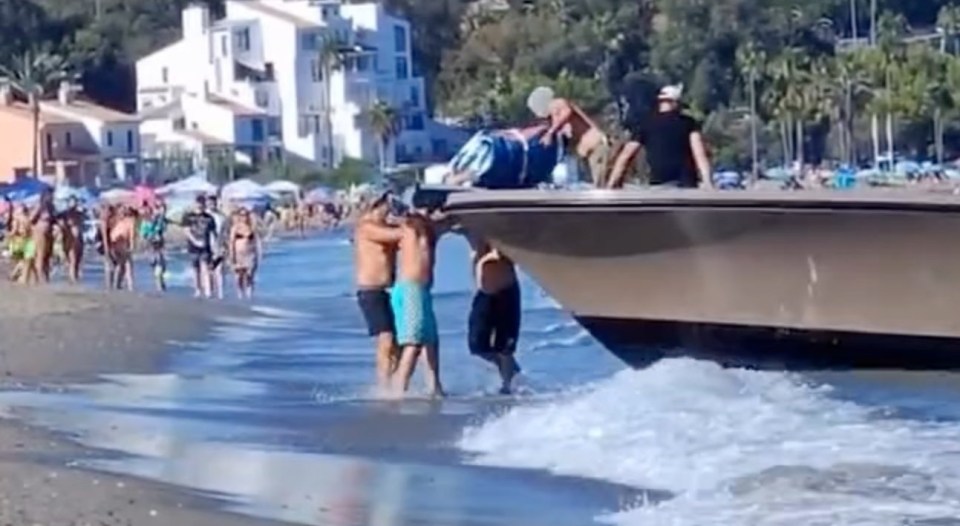 AS SUNBATHERS stared in dismay and children built sandcastles, brazen smugglers landed their boat on a busy beach near Marbella, unloading their illicit cargo in broad daylight.