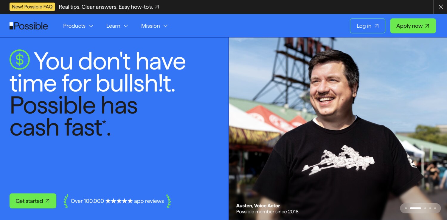 Possible offers borrowers up to $500 directly into their bank account or debit card, mostly within minutes.