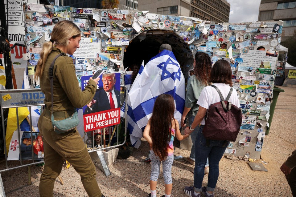 Many visited a tunnel where messages for the kidnapped were left along with a poster thanking US President Donald Trump.