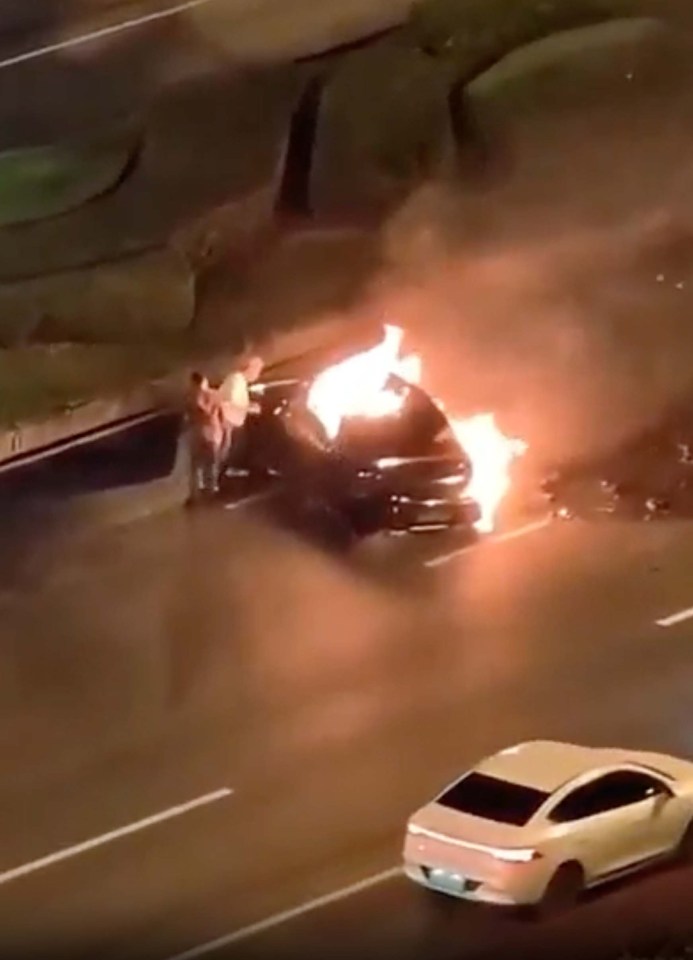 Despite frantic efforts rescuers couldn’t reach Deng before the fire consumed the car.