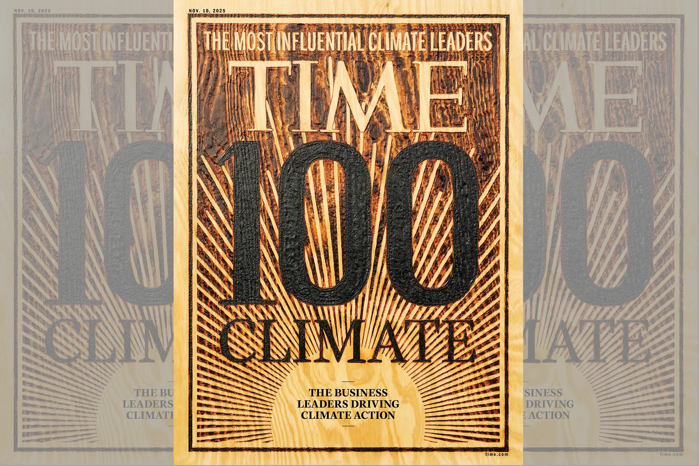 The 2025 TIME100 Climate issue includes a worldwide cover, featuring artwork by artist Michael Papadakis. For the cover, Papadakis spent 10 days in Boise, Idaho, capturing sunlight with magnifying glasses to create his design. His process involved mapping the sun’s path, calculating angles, sketching outlines, and planning how light would travel across the surface, before burning the image onto a piece of untreated wood. Read more about the creative process here.