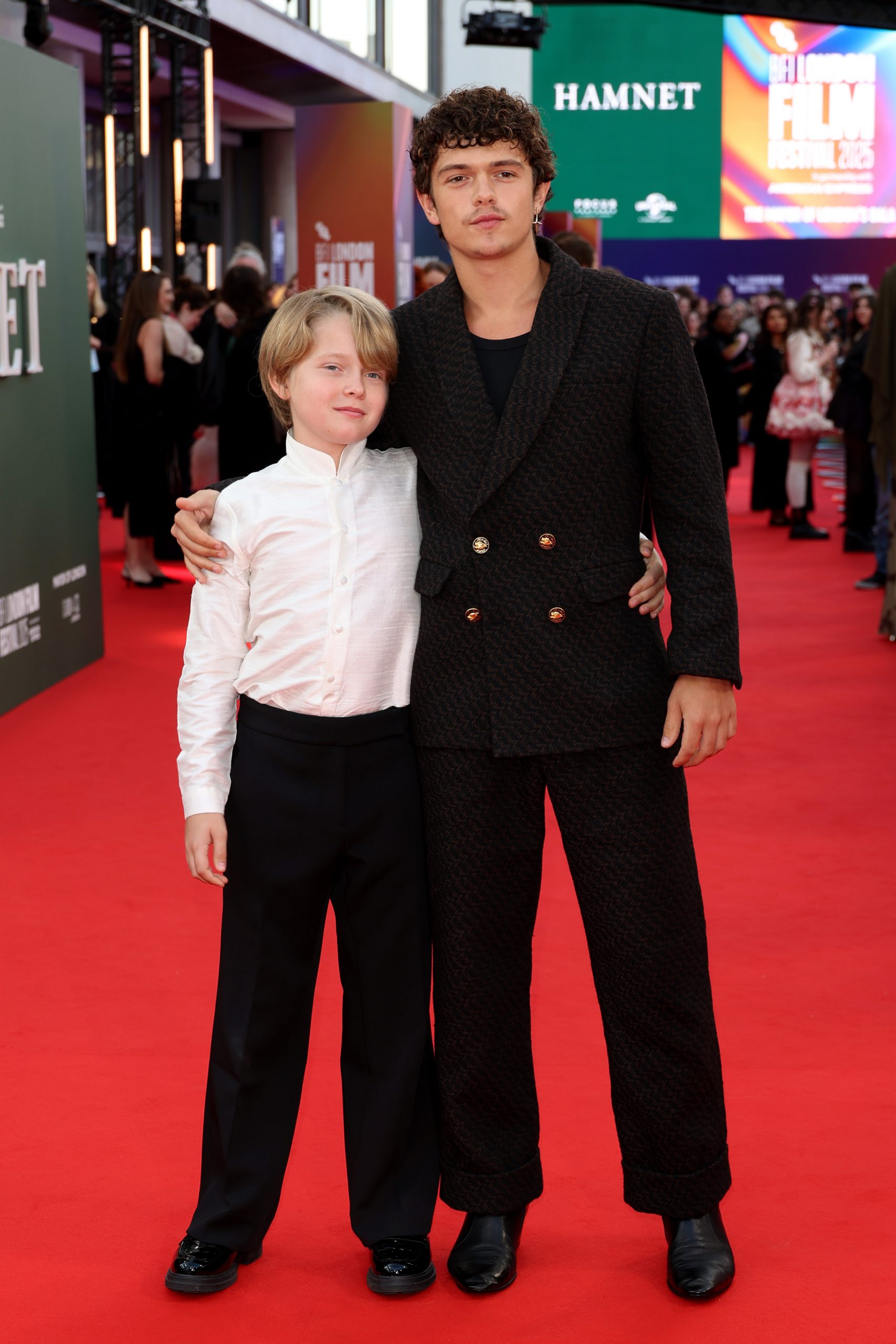 Jacobi and Noah Jupe grew up in the UK, raised by a producer dad and actor mom. (They also have a sister.) In the movie, they both share scenes with Paul Mescal, as the Bard, and Jessie Buckley, as his earthy wife Agnes. The Shakespeares are presented as loving parents who view the world differently—William is dedicated to his craft; Agnes to the mystical qualities of the land. After Hamnet’s death, both fall into despair, but are unable to reach one another.