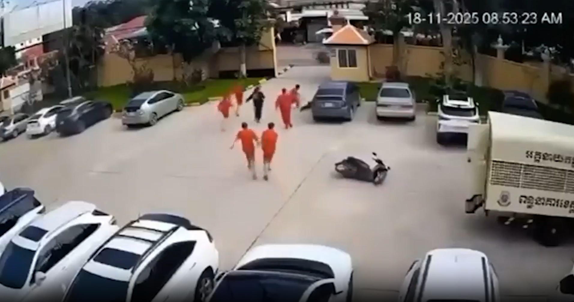 THIS is the shocking moment a jailed kingpin is stealthily handed a gun by his moll outside court, aiding a brazen daylight escape. The security camera footage shows the prisonbreak unfold outside a Cambodian court on November 18 as a gun is turned on guards. Prisoners were being transported to Svay Rieng Provincial Court and…