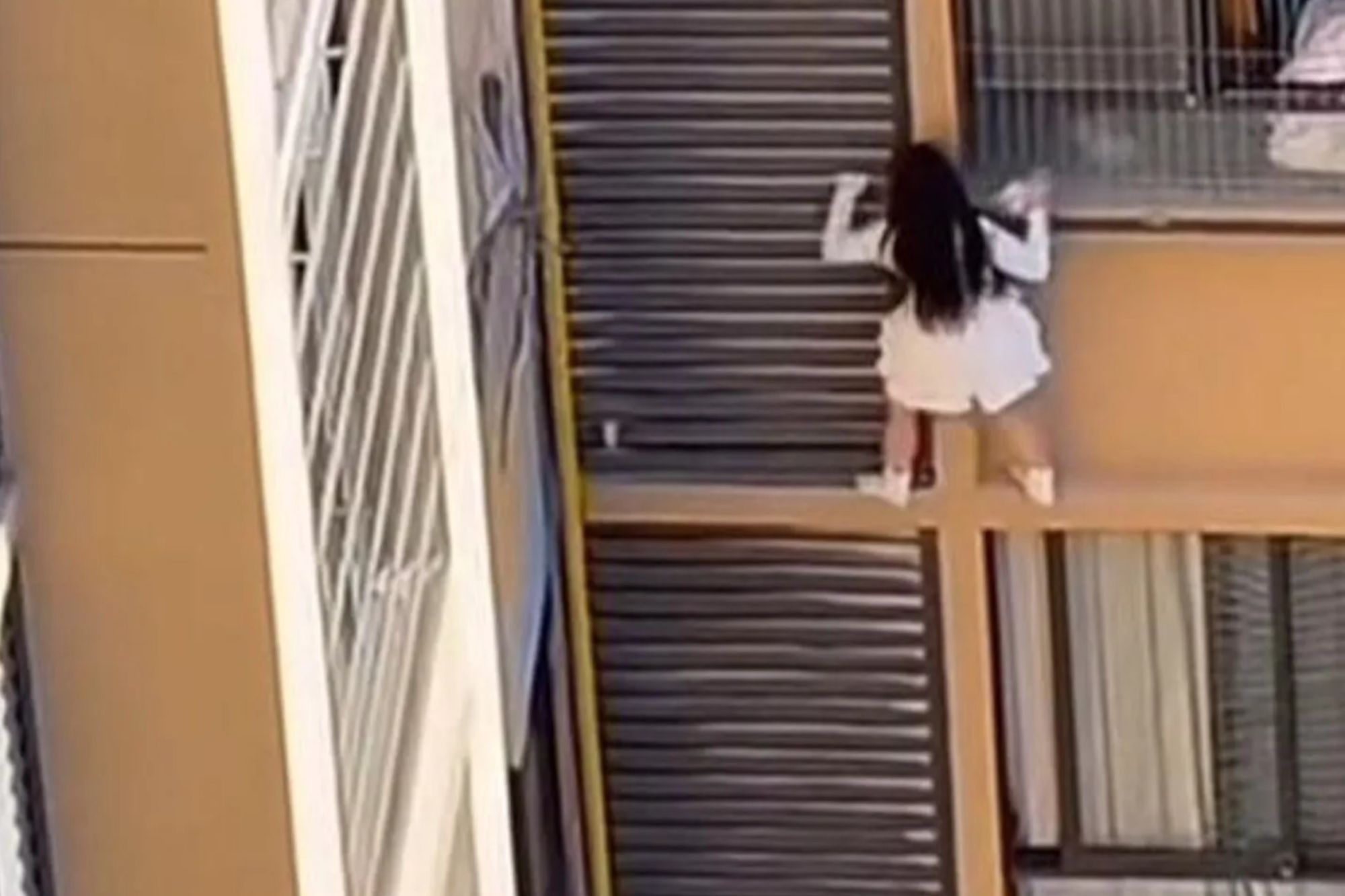 CLINGING for dear life, this is the shocking moment an alleged mistress nearly plunges to her death trying to hide from her lover’s wife. Neighbours spotted the woman dangling from a 10th floor balcony as she appears to almost lose her grip. The heart-stopping moment was captured in China, as onlookers watched on in horror…