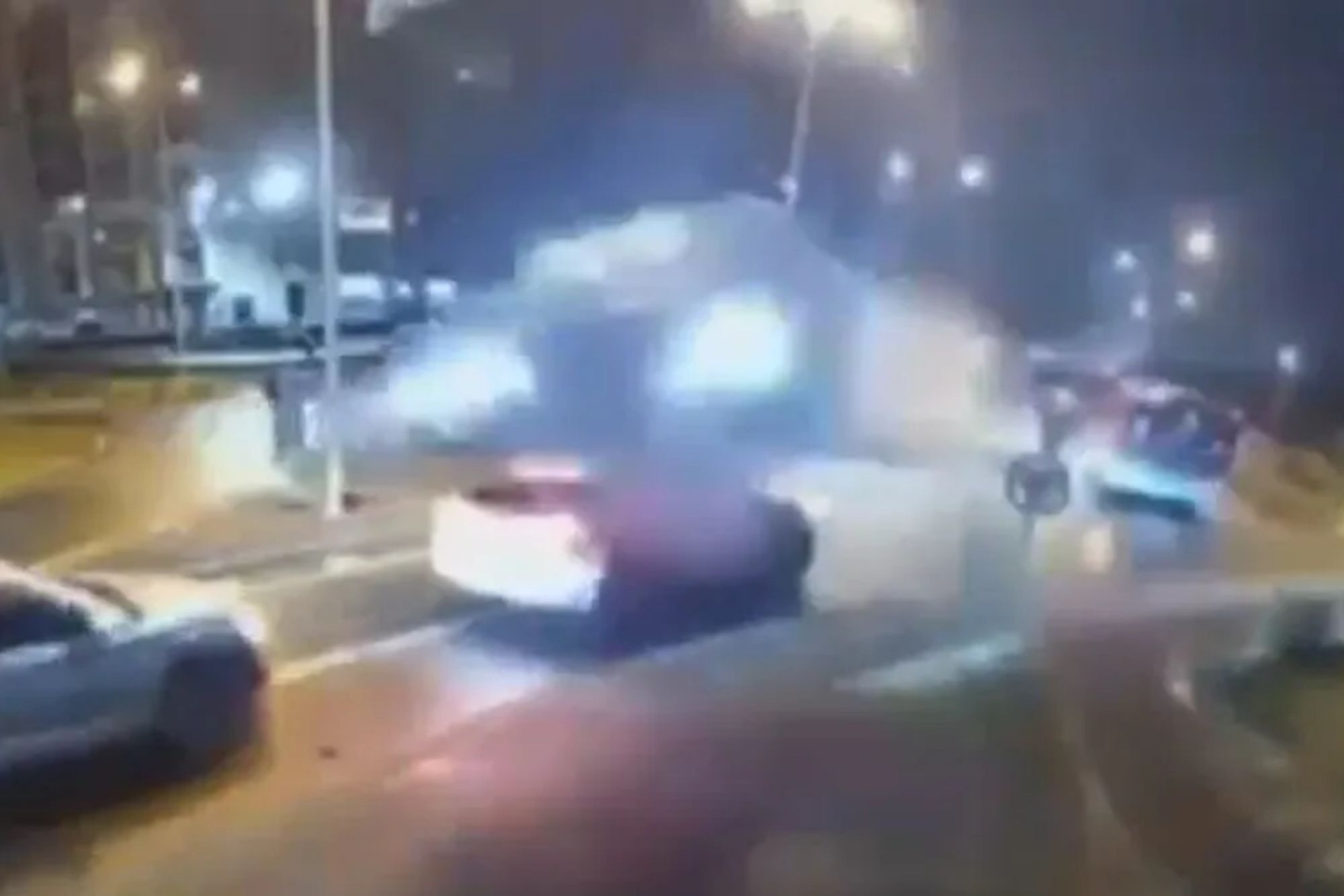 THIS is the terrifying moment a Romanian motorist catapulted his Mercedes over several cars – and unbelievably walked away with his life. Shocking CCTV footage shows the car speeding straight at a roundabout, clipping the kerb and being launched sky-high at lightning speed. The vehicle is airborne for several seconds before slamming into a metal…