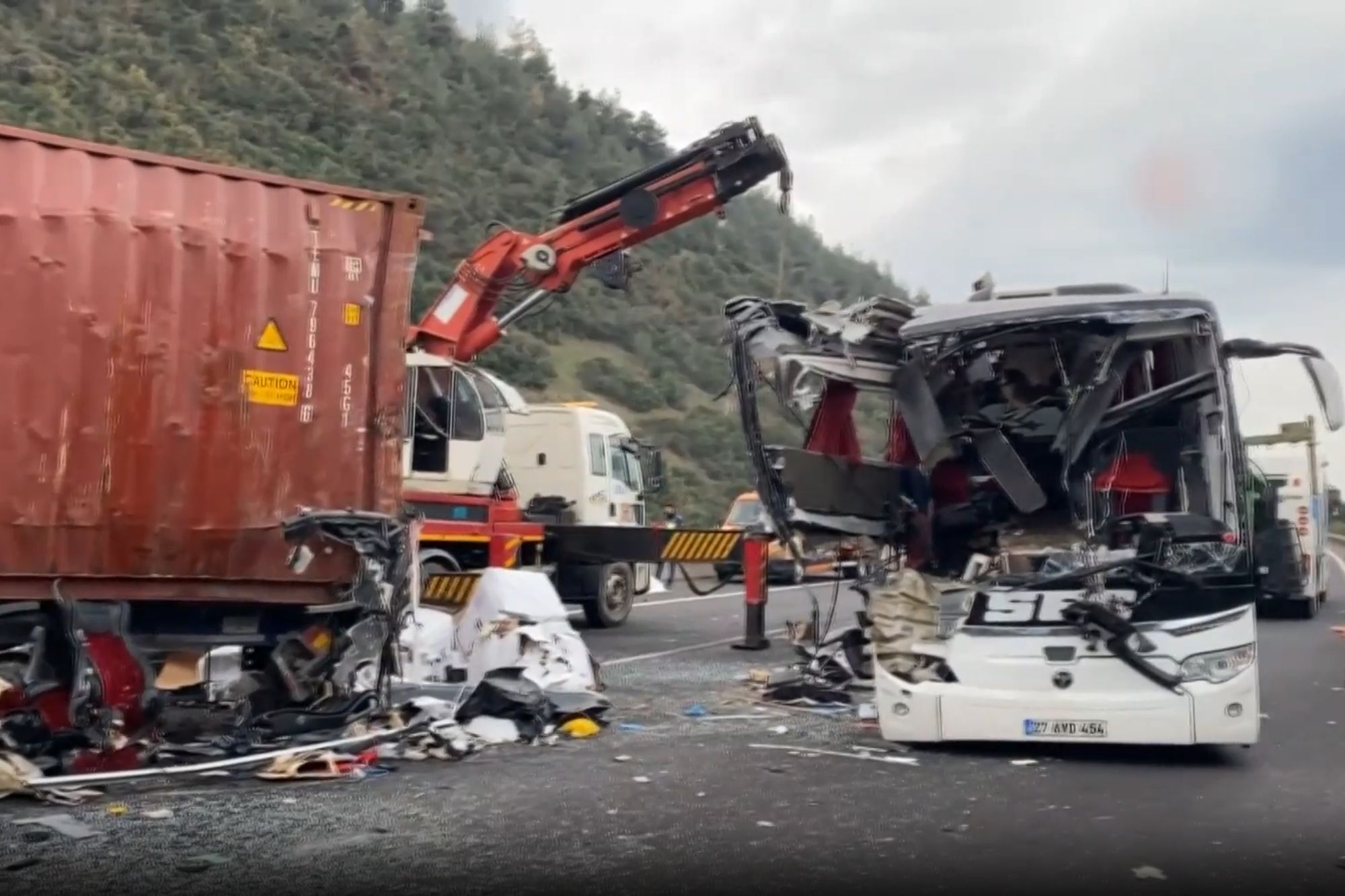 AT least seven people have been killed and 11 were left injured after an intercity bus crashed into a lorry on a motorway. The accident occurred when the coach collided with the articulated truck, which had stopped after one of its tyres blew out. Footage from the scene showed that the front right section of…
