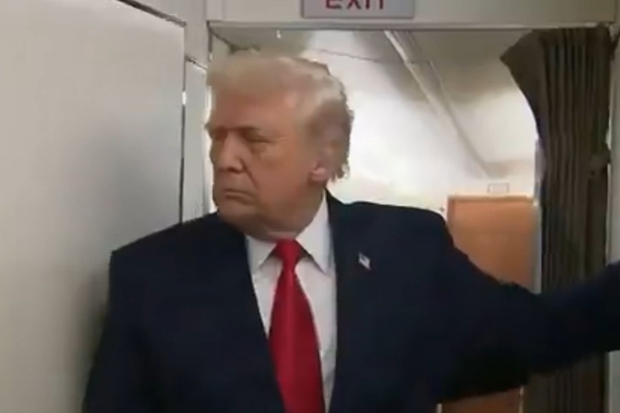 THIS is the hilarious moment Donald Trump is hit by a bathroom door while speaking to reporters aboard Air Force One. The president, 79, was in the middle of lightly scolding a reporter for carelessly wielding their boom mic around, when the amusing interruption occurred. “You’re gonna have to take it easy with that thing,”…