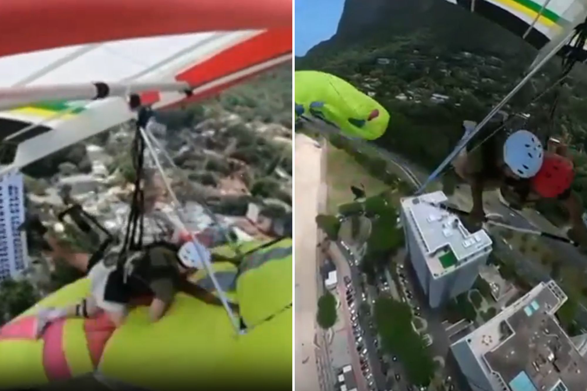 HORROR footage shows the moment a hang glider crashed into a paraglider mid-air – causing its pilot to plunge to his death. Sergio Manoel Da Silva, a flight instructor, was flying with a student when he collided with Philip Eric Haegler in Brazil. Horror footage shows Sergio flying with a student in a red hang…